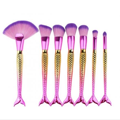 Halo World 7pcs Mermaid Makeup Brush Set Pink Purple Rose Gold Color