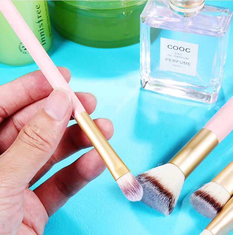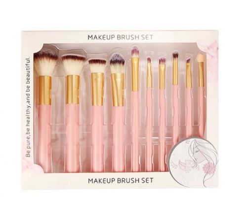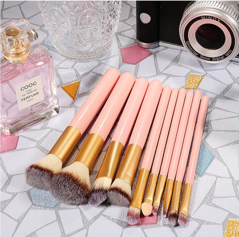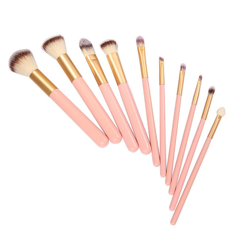 Halo World 10 Pieces Pink Handle Rose Gold Matt Ferrule Makeup Brush Set