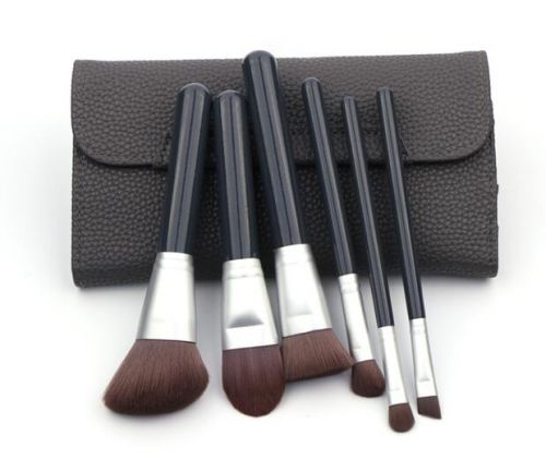 PL7-CT1Halo World 6 Pieces Black Handle Brown Hair Makeup Brush Set