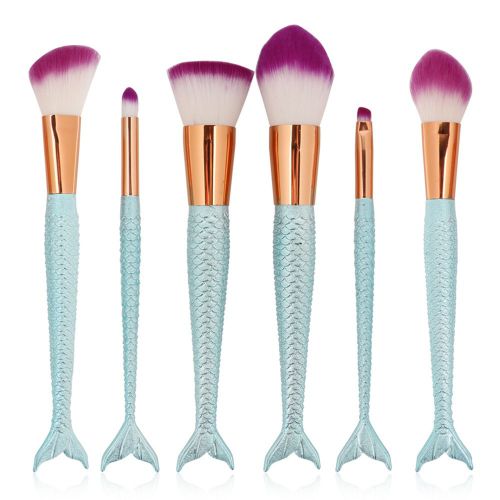 Halo World 7pcs Mermaid Makeup Brush Set Pink Purple Rose Gold Color