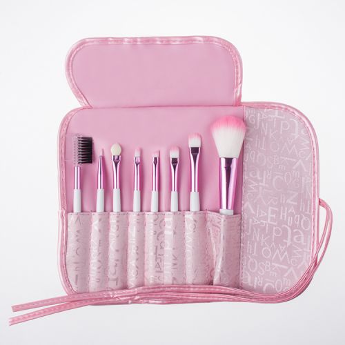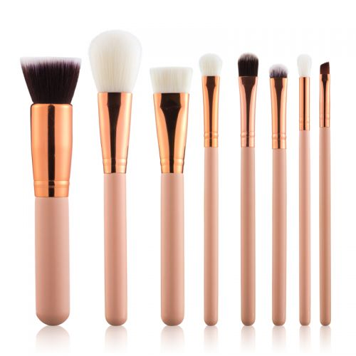 Halo World 8pcs Pink Wood + Gold Aluminium Handle Makeup Brush