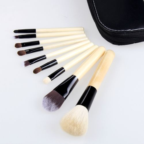 Halo World 8pcs Black Color Wood Handle Makeup Brush