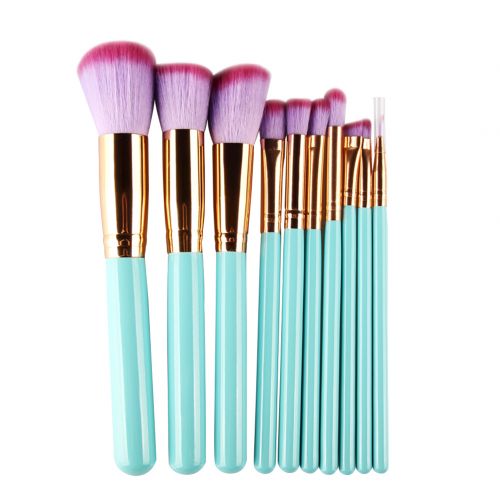 Halo World 10pcs Green Color Makeup Brush With Shell PU Bag