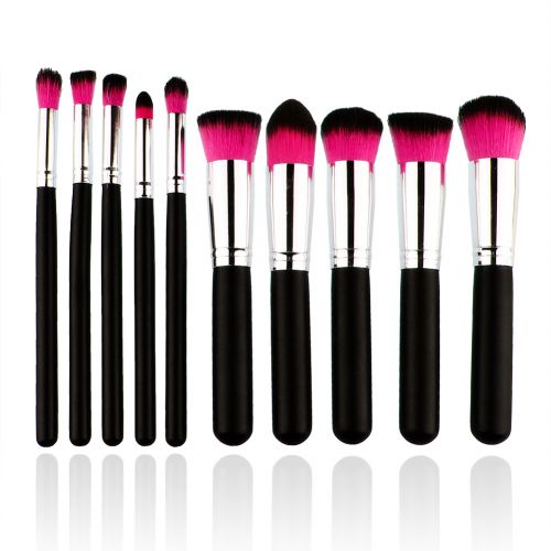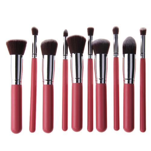 Halo World 10pcs Black Silver Handle Red Hair Makeup Brush Set