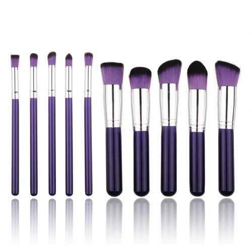 Halo World 10pcs Black Silver Handle Purple Hair Makeup Brush Set
