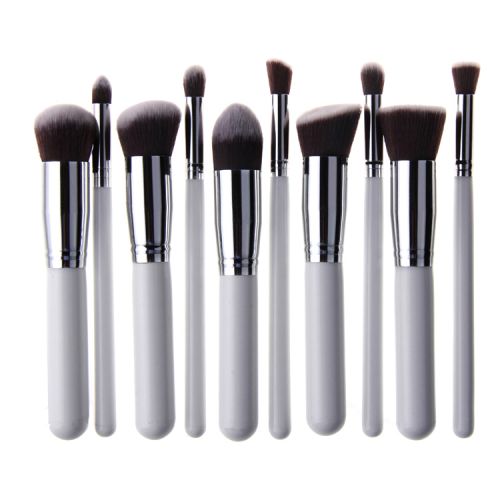 Halo World 10pcs White Gold Handle Brown Hair Makeup Brush Set