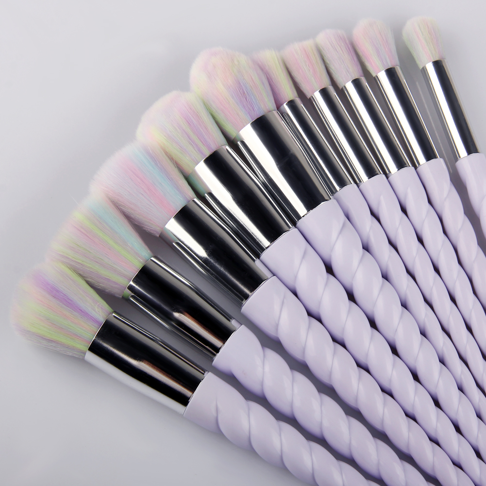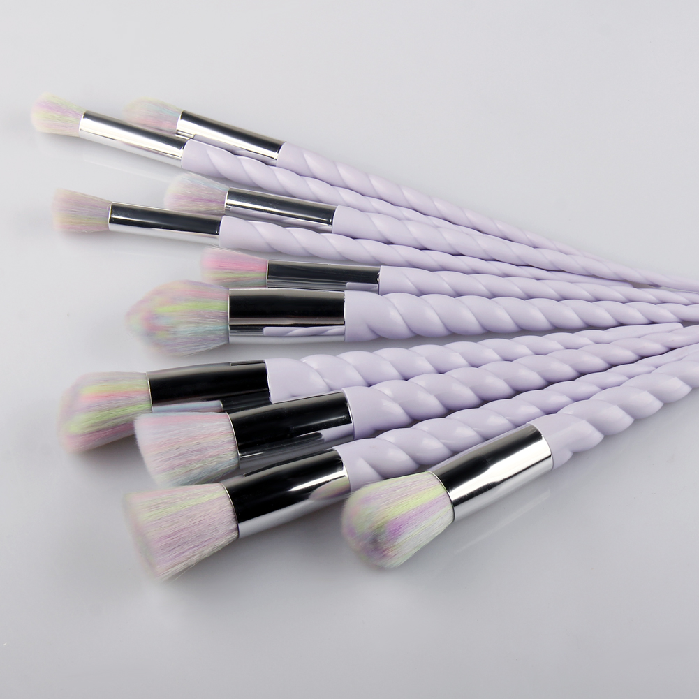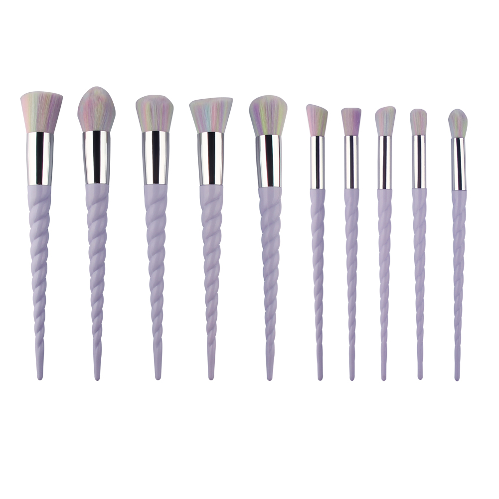 Halo World 10pcs Unicorn Makeup Brush Purple Handle Multi-Color Hair Brush Set