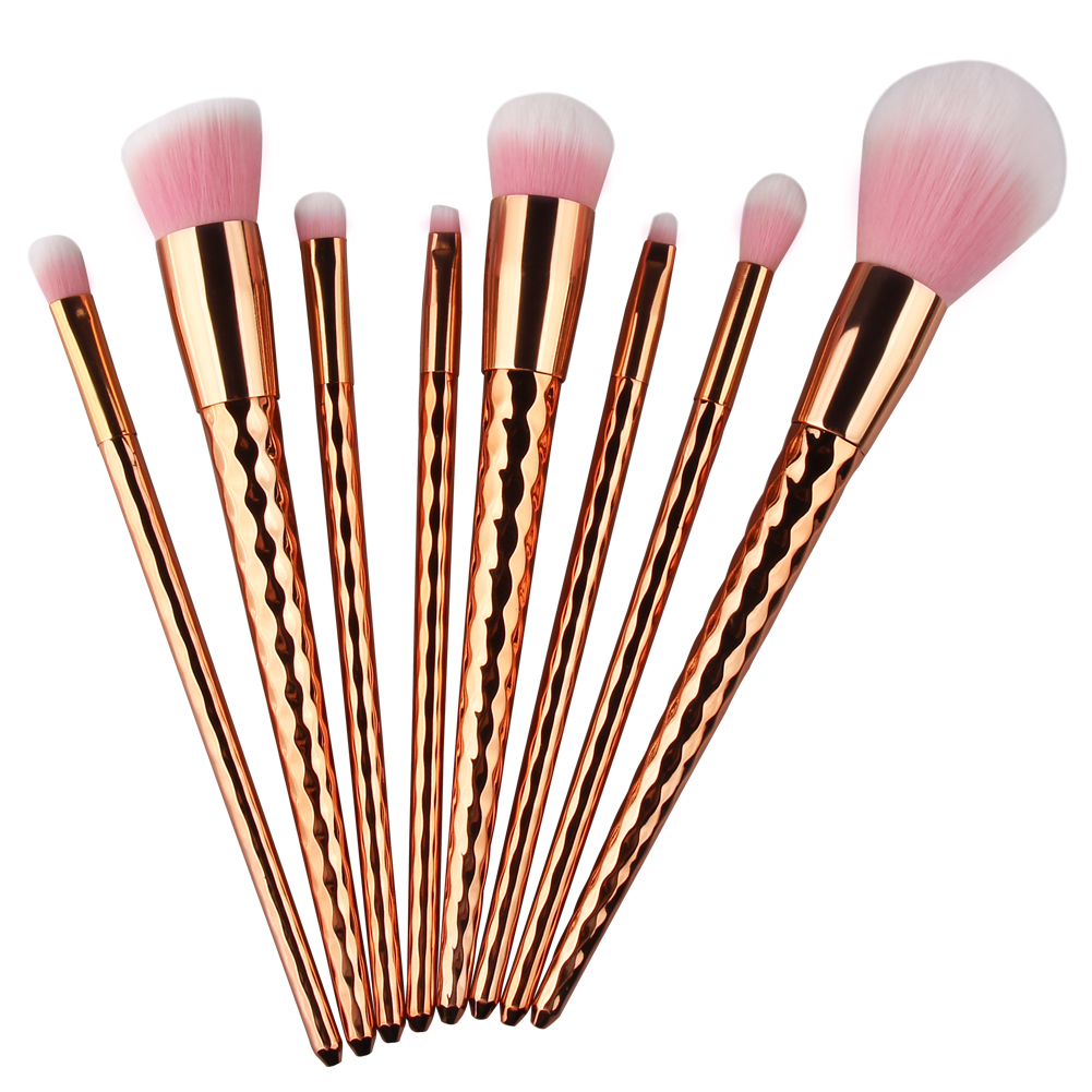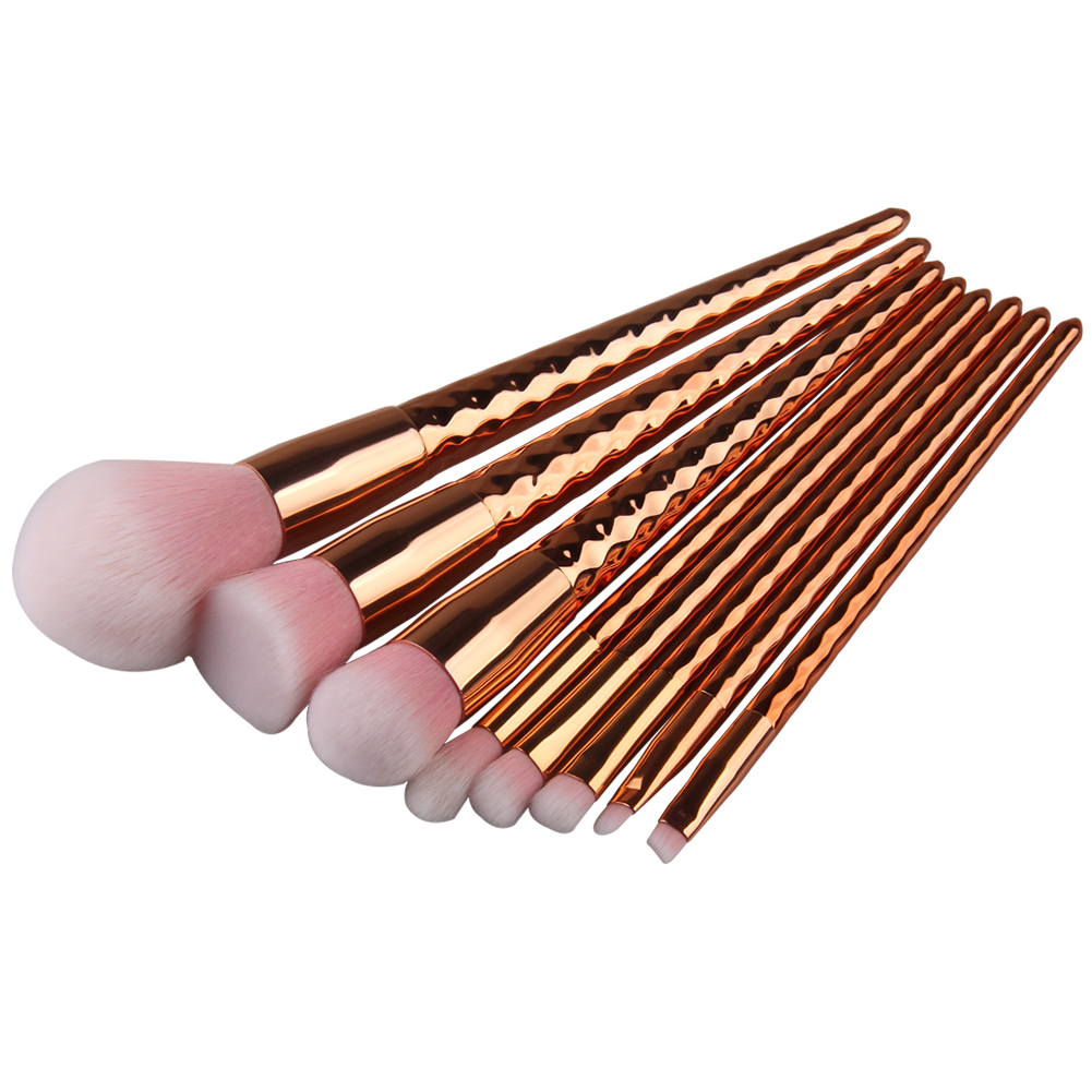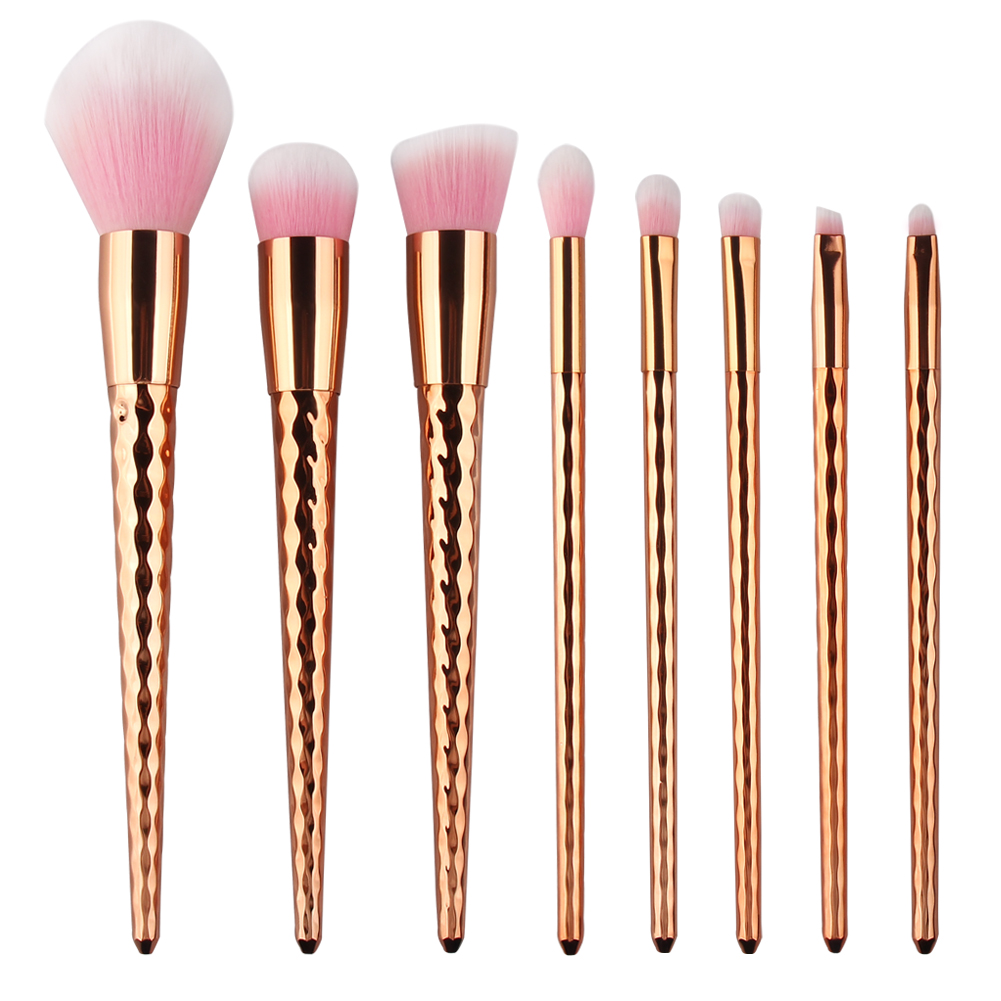 8 Pieces rose gold diamond shape unicorn makeup brush set