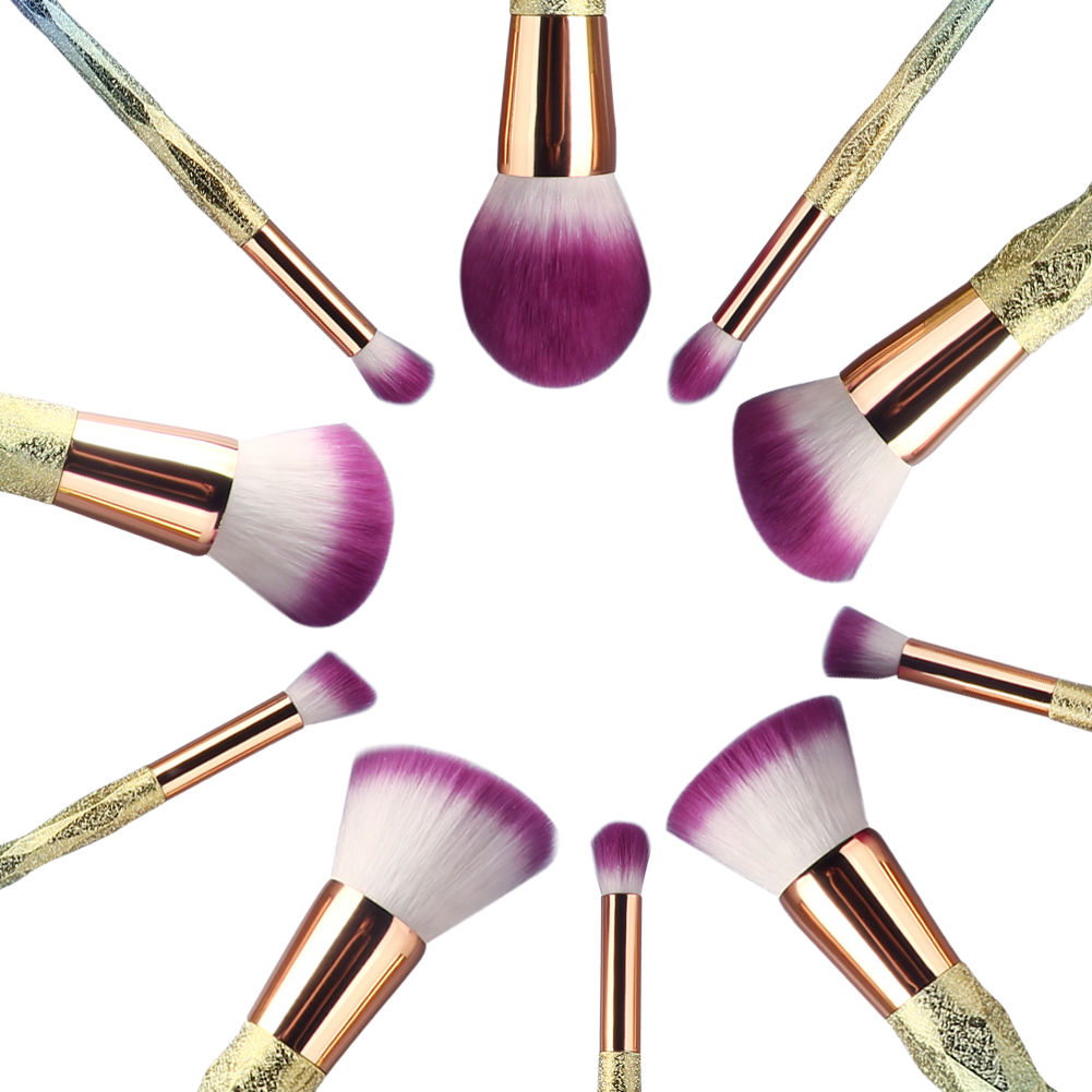 Halo World 10pcs Shiny Colorful Unicorn Makeup Brush Set