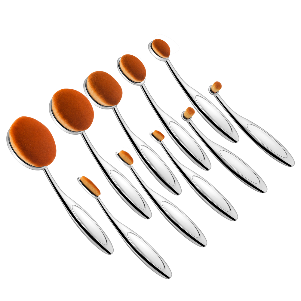Halo World 10pcs Aluminum Handle Oval Makeup Brush