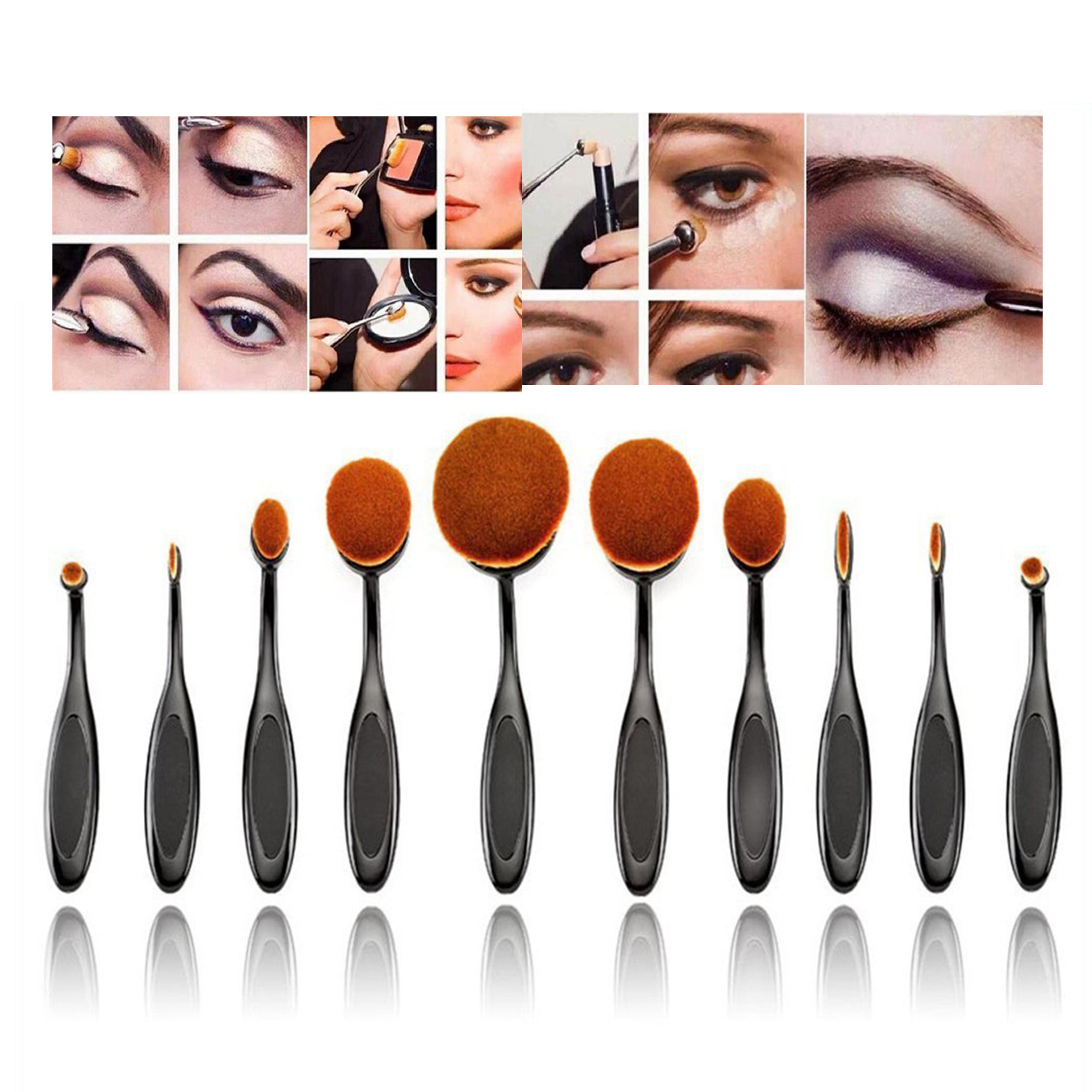 Halo World 10pcs Plastic Handle Makeup Brush