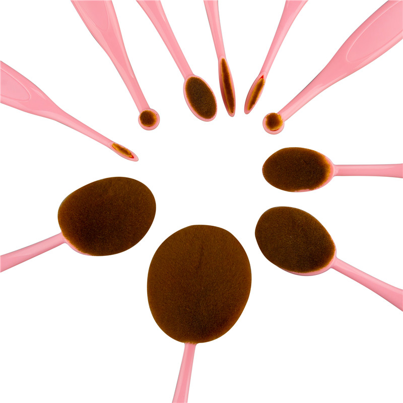Halo World 10pcs Pink Plastic Handle Makeup Brush