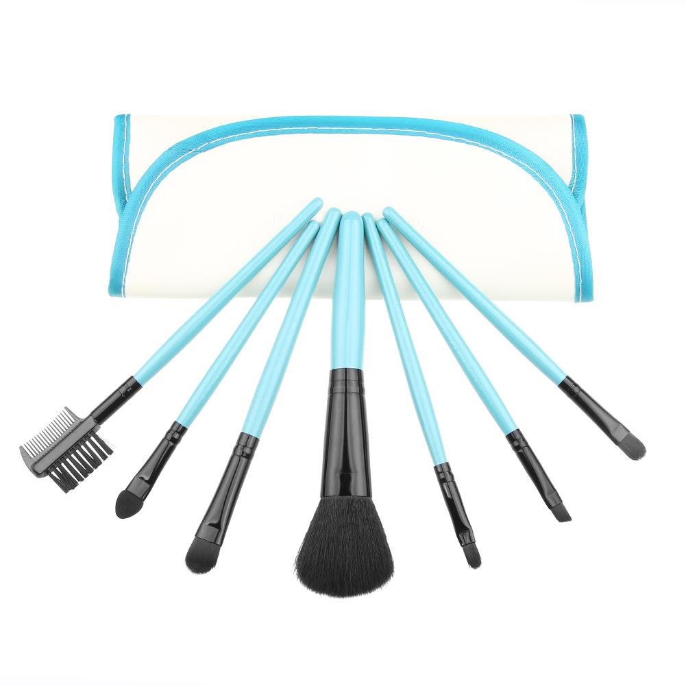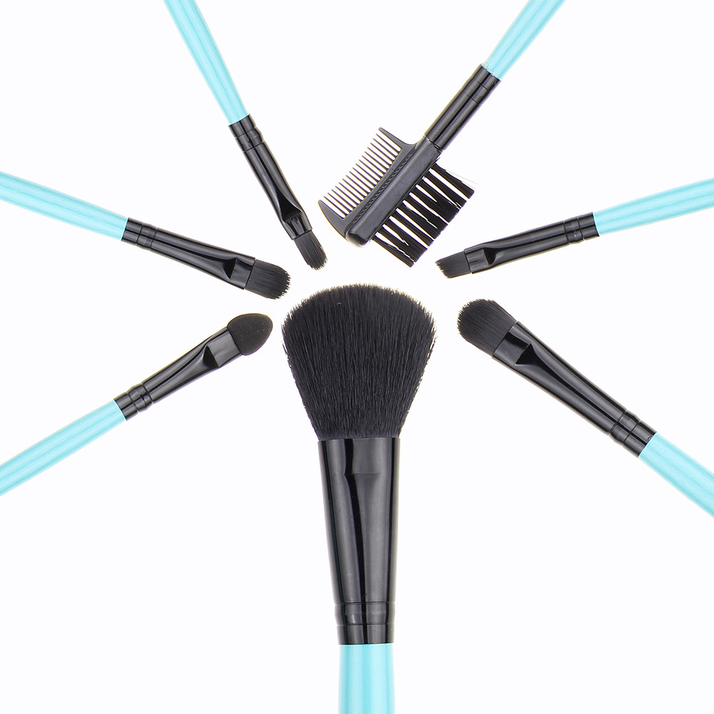 Halo World 7pcs Blue Wood + Plastic Makeup Brush