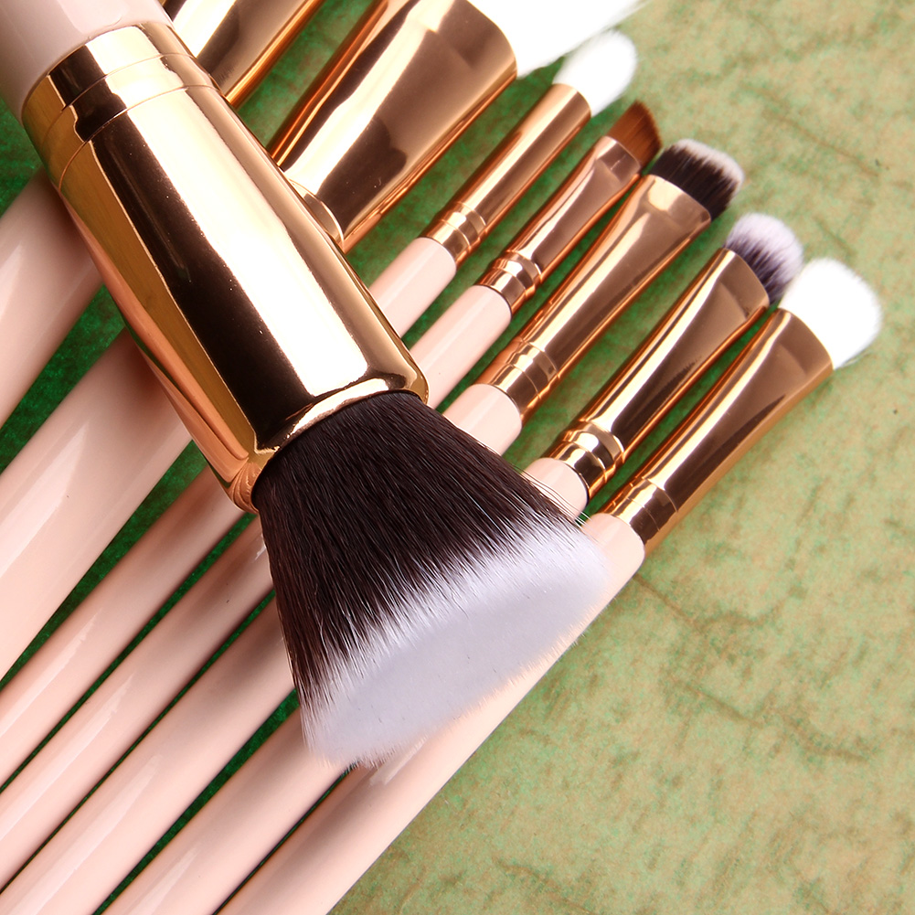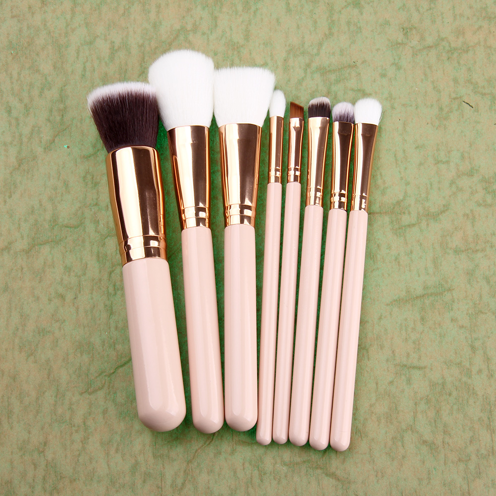 Halo World 8pcs Pink Wood + Gold Aluminium Handle Makeup Brush