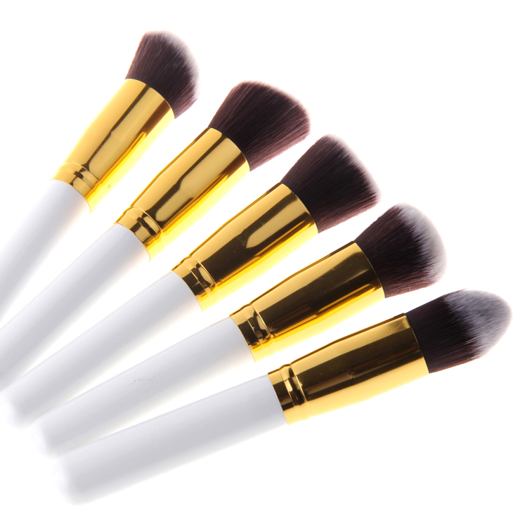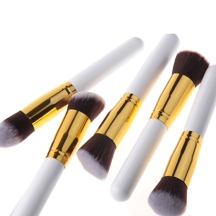Halo World 10pcs White Gold Handle Brown Hair Makeup Brush Set