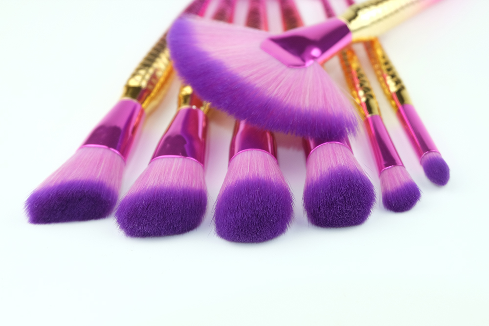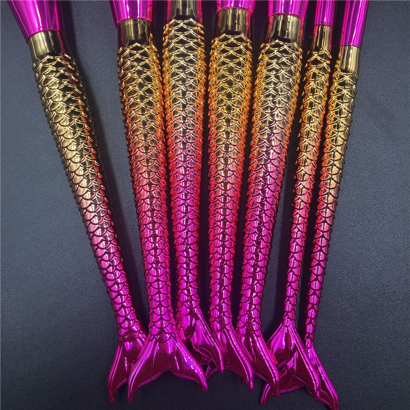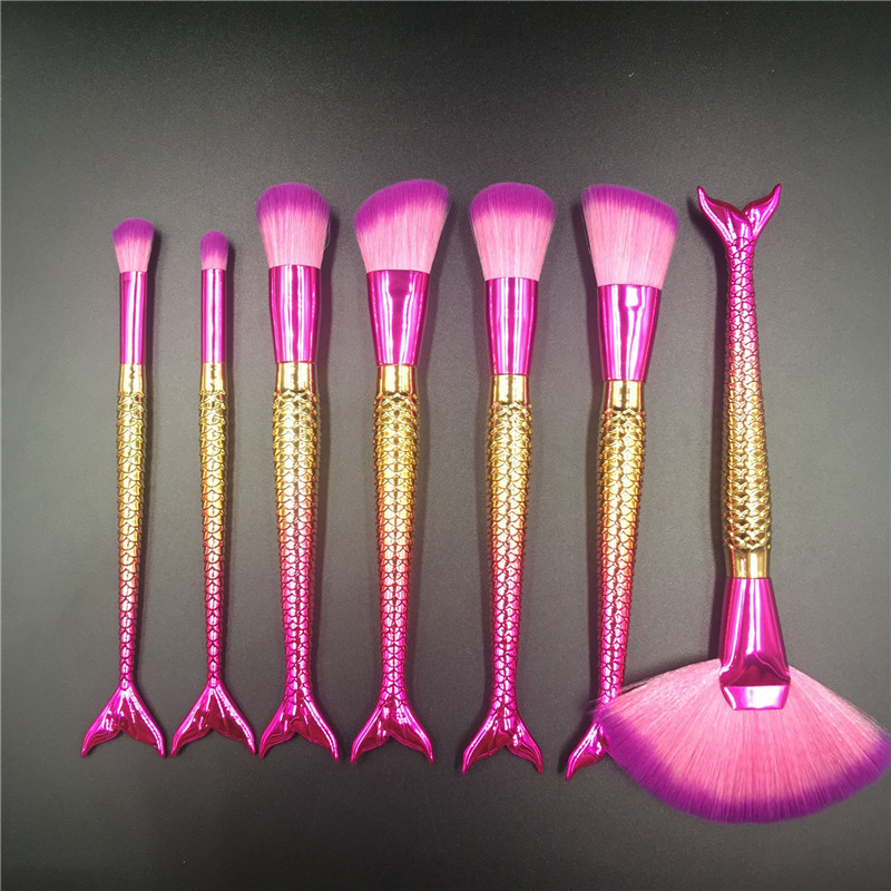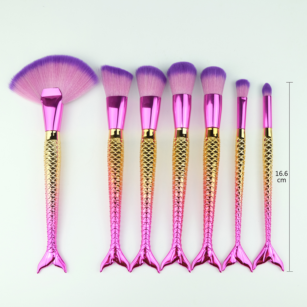 Halo World 7pcs Mermaid Makeup Brush Set Pink Purple Rose Gold Color